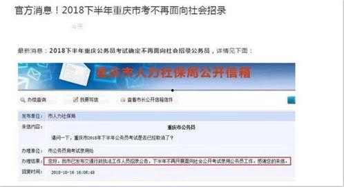 你知道吗?最近在重庆公务员圈子里,可是炸开了锅!一位神秘人士突然爆料,透露了关于公务员考试的最新消息,这可让不少备考的小伙伴们兴奋不已。今天,就让我带你一起揭开这神秘的面纱,看看这位“大侠”都说了些什么吧!